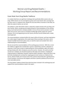 Exploring key themes, recommendations and practical applications of literature around drug related deaths in women following on from the Drugs Death Task Force meeting in February 2021.