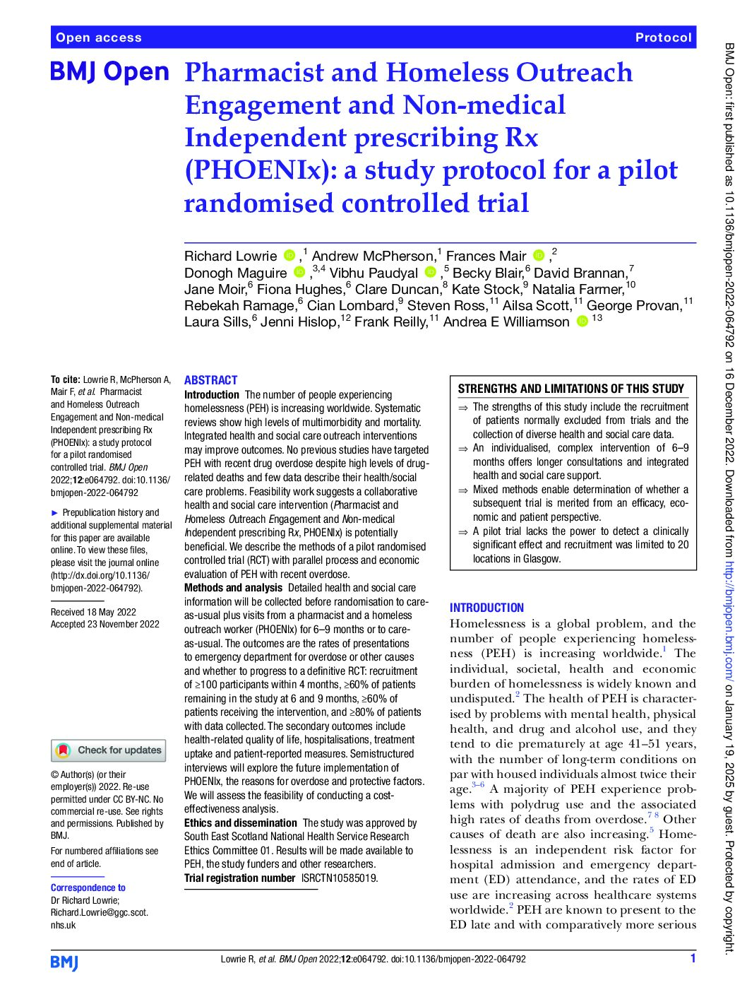 A randomised trial where two Simon Community support workers provided weekly support to 27 individuals alongside pharmacist prescribers.